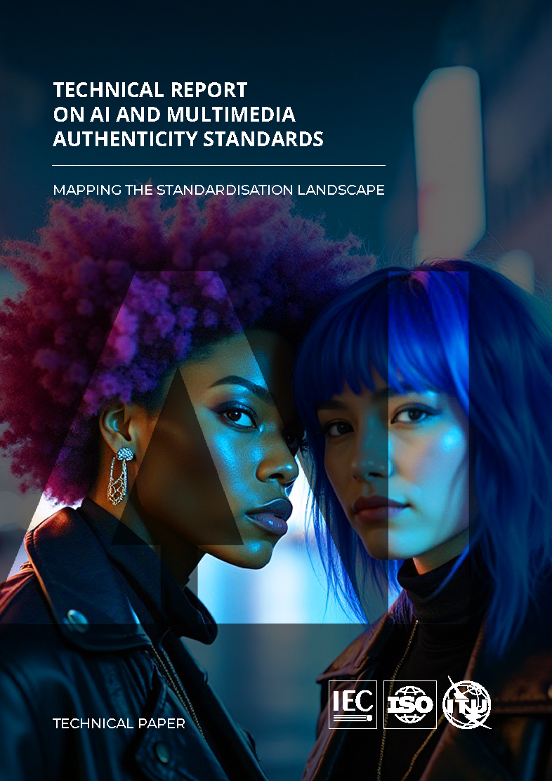 This technical paper provides a comprehensive overview of the current landscape of standards and specifications related to digital media authenticity and artificial intelligence. It categorizes these standards into five key clusters: content provenance, trust and authenticity, asset identifiers, rights declarations, and watermarking. The report provides a short description of each standard along with link for further details. By mapping the contributions of various Standard Development Organizations (SDOs) and groups, we aim to identify gaps and opportunities for further standardization. This could serve as a valuable resource for stakeholders seeking to navigate the complex ecosystem of standards at the intersection of artificial intelligence and authenticity in digital media and to implement best practices to safeguard the authenticity of digital assets and the rights assigned to them. The findings underscore the critical role of robust specifications and standards in fostering trust and accountability in the evolving digital landscape.